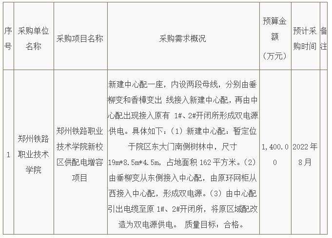 为便于供应商及时了解政府采购信息,根据《河南省财政厅关于开展政府采购意向公开工作的通知》(豫财购【2020】8号)等有关规定,现将郑州铁路职业技术学院 2022年7(至)8月采购意向公开如下: